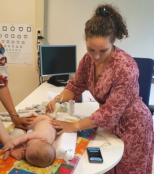 In samenwerking met het Radboud Universitair Medisch Centrum doen wij onderzoek naar het maken van heupecho’s op het consultatiebureau. Met dit onderzoek kijken we of de jeugdarts op het consultatiebureau betrouwbaar een echo van de heupen kan maken. Dit zou er voor kunnen zorgen dat kinderen in de toekomst niet meer naar het ziekenhuis hoeven te reizen voor deze echo.