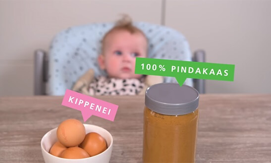 Vanaf 4 maanden mag een baby beginnen met vaste hapjes (groente/ fruit). Het advies is om dan ook te starten met het geven van pinda en ei. In ieder geval voor de 8 maanden. Het beste kun je deze voedingsmiddelen de eerste keren niet tegelijk geven. Als je kind dan klachten krijgt, is het niet duidelijk waar je kind op reageert, op het ei of op de pinda. Bij sommige kinderen is er reden voorzichtiger te starten (zie onder).